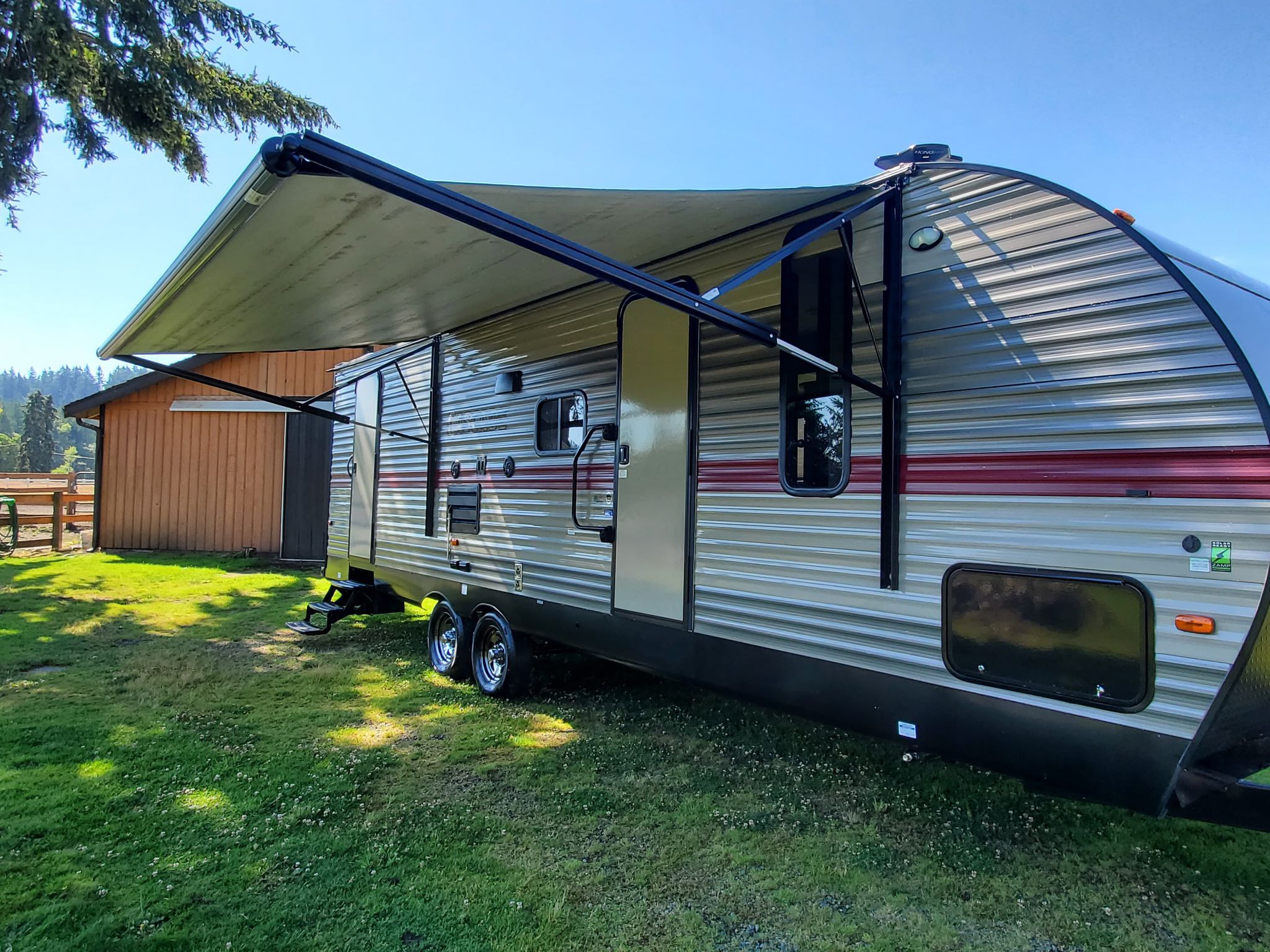 Price Reduced! Selling our 2018 Forest River Cascade 27-foot BH model. Like new. It was used as a temporary MIL apartment while we built and now it is ready for hunting season or anything you need it for. We had hoped to use it as an actual travel trailer after the house, but life got in the way and it is time to let it go. It has been stored inside the shop since we bought it - we brought it outside for a bath and pictures. The tires are brand new, the awning was almost never unfurled, and it has a separate queen bedroom with a new mattress and two bunk beds at the other end. Has a pantry, abundant storage, and a very cool fireplace. Heat/AC/1 slide out. Has all the hundreds of dollars of "required for warranty" upgrades from Poulsbo RV. Tired of salesmen? I am. Priced thousands less than Poulsbo RV has these listed for. Can deliver up to 50 miles from Roy, WA area.