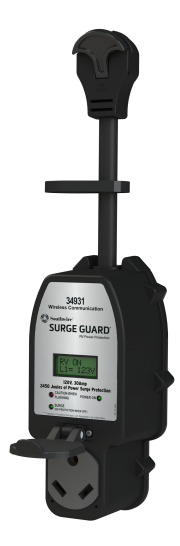 The Southwire Surge Guard provides total electrical protection for your 30-amp RV, including protection against wiring issues, park low/high voltage and frequency, and elevated ground line current. Rated 120V, 30A – 2450 Joules. Ten-second start-up sequence and 128 second fault delay sequence protect. A security ring on the cord lets you lock the Surge Guard to prevent theft.